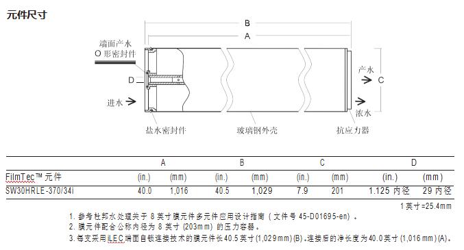 FilmTec™ SW30HRLE-370/34i 元件是一款高耐久性、高脫除率、高產水量海水膜元 件,用于高污染或挑戰性水源的情況,有助于系統的穩定運行和產水成本的降低。