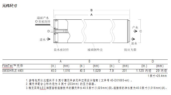 FilmTec™ SW30HRLE-440i 元件有著高脫鹽率和低能耗的組合特點(diǎn),同時(shí)還有著最 高有效膜面積和寬進(jìn)水流道,能夠?yàn)橹械群透叩塞}度進(jìn)水的系統(tǒng)提供可持續(xù)的 低生命周期成本。FilmTec™ SW30HRLE-440i 元件有以下優(yōu)點(diǎn):