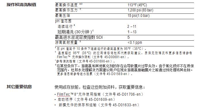 • 無(wú)需進(jìn)行氧化后處理保證了在整個(gè)運(yùn)行周期內(nèi)都能保持高性能。FilmTec™ 元 件更耐用,且能在更寬泛的 pH 值范圍(1-13)內(nèi)進(jìn)行化學(xué)清洗。