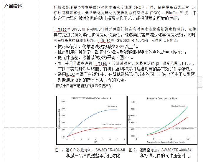 端面自鎖、抗污染海水淡化反滲透膜元件