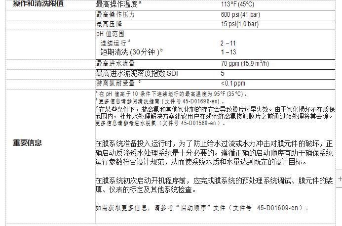 • FilmTec™ BW30-400 IG 膜元件在生產(chǎn)過(guò)程中無(wú)預(yù)氯化處理,保證了高產(chǎn)水量和 高脫鹽率。這是為什么 FilmTec™ 元件相比其他品牌元件更耐用且可以在最寬 的 pH 耐受范圍(1-13)進(jìn)行化學(xué)清洗的原因。