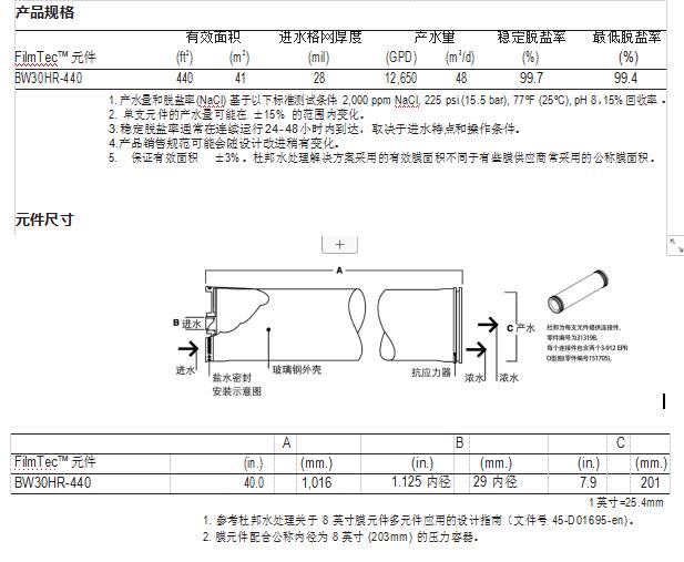 FilmTec™ BW30HR-440 元件經(jīng)證明,具有優(yōu)異的性能: