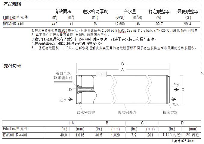 FilmTec™ BW30HR-440i 元件經證明,具有優異的性能: