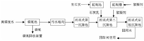 根據(jù)多年實踐經(jīng)驗,針對常見黃磷廢水處理工藝存在的缺陷,筆者與同事們探索了在中和—平流沉降法基礎上的改進型黃磷廢水處理工藝,即生石灰中和—絮凝平流沉降法。