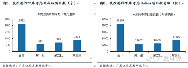 發改委前兩批推介項目中,批推介1043個,因多種因素變化而不再采用PPP模式的項目254個;第二批退庫項目518個;考慮一二批的退庫,PPP項目庫比較新項目共2992個,投資額5.1萬億元。
