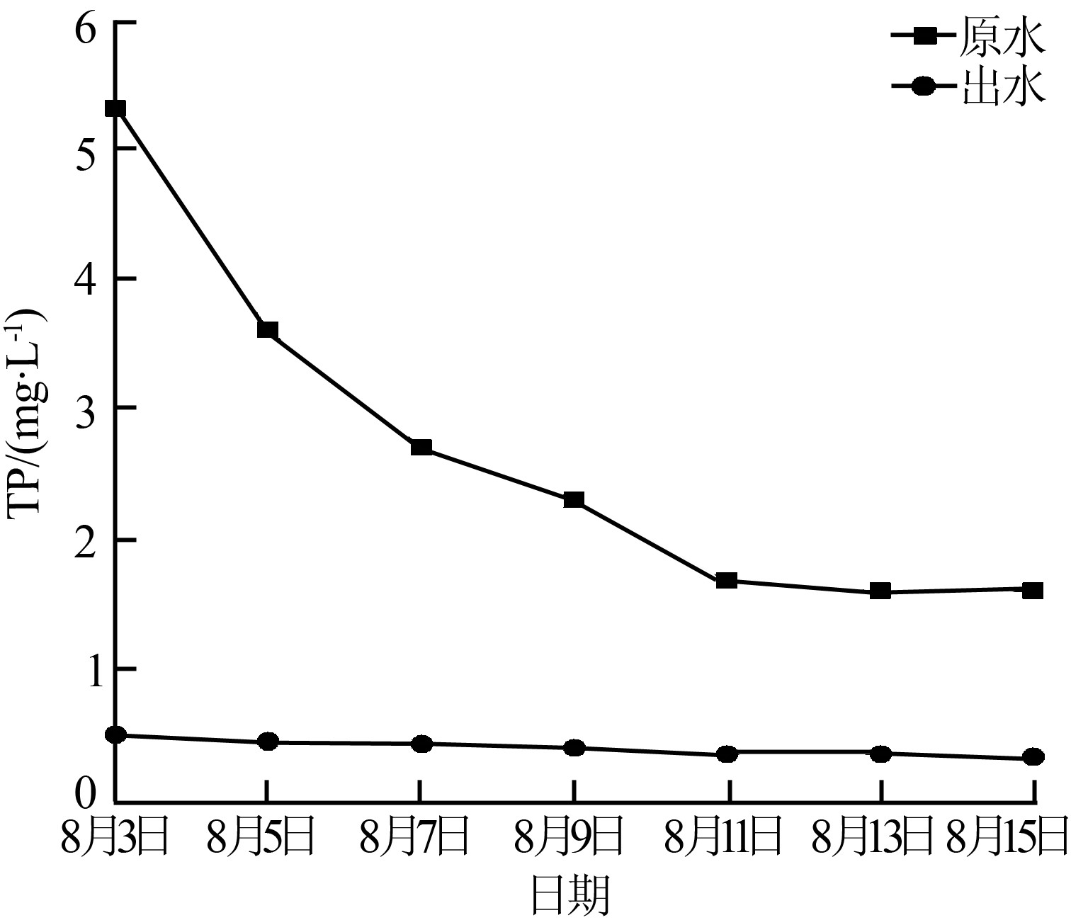 由表3可見,工藝中對TP去除起主要作用的工序是TMF過濾,其去除率約為58%。經(jīng)過MBR和吸附處理后,廢水中TP質(zhì)量濃度小于0.5mg/L,達(dá)到(GB21900—2008)表3標(biāo)準(zhǔn)的要求。