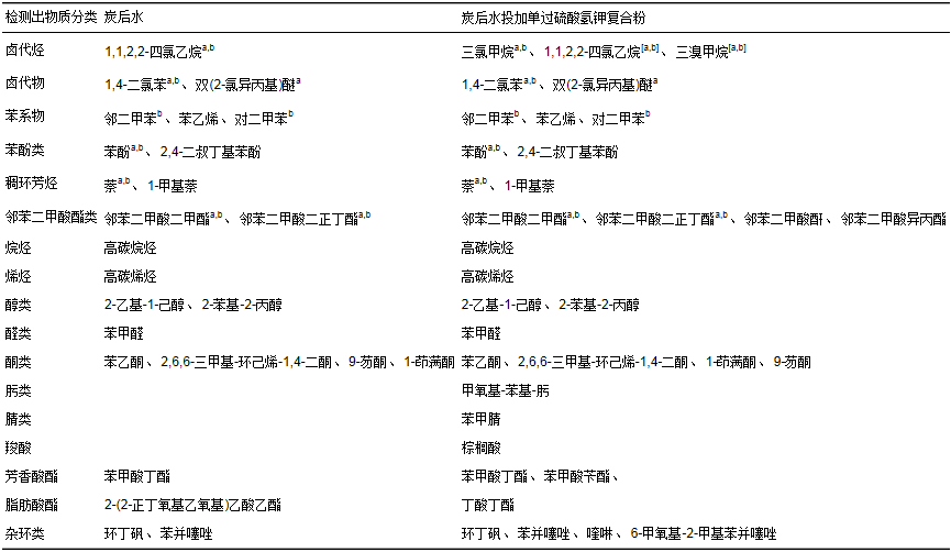 表 2 炭后水投加單過硫酸氫鉀復合粉前后GC/MS分析結果