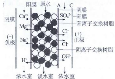 由圖 2 可見(jiàn),工作過(guò)程一般分為三個(gè)步驟: (1)淡水室中的離子交換樹(shù)脂對(duì)水中電解質(zhì)離子的交換作用,去除水中的離子;(2)在外電場(chǎng)作用下,水中電解質(zhì)沿樹(shù)脂顆粒構(gòu)成的導(dǎo)電傳遞路徑遷移到膜表面并透過(guò)離子交換膜進(jìn)入濃水室;(3)樹(shù)脂、膜與水相接觸的擴(kuò)散層中的極化作用使水解離為H+和OH-,除部分參與負(fù)載電流外大多數(shù)對(duì)樹(shù)脂起再生作用。離子交換、離子遷移、電再生相伴發(fā)生、相互促進(jìn),實(shí)現(xiàn)了連續(xù)去除離子的過(guò)程〔3〕。