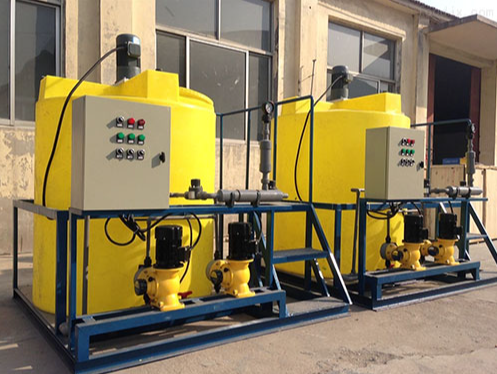 加藥裝置根據(jù)所需藥劑濃度,在攪拌箱內(nèi)配置,經(jīng)攪拌器攪拌均勻后投入溶液箱、用計(jì)量泵向投藥點(diǎn)或指定系統(tǒng)中輸送所配制的溶液。成套加藥裝置具有結(jié)構(gòu)緊湊、安全簡(jiǎn)單、操作使用簡(jiǎn)便等特點(diǎn)。加藥裝置還可根據(jù)用戶(hù)不同工藝流程的要求,進(jìn)行有針對(duì)性的設(shè)計(jì)、配置必要的部件,實(shí)現(xiàn)自動(dòng)遠(yuǎn)程控制等功能。