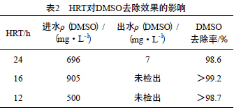 在MBR運(yùn)行的正式期,HRT對(duì)DMSO去除效果的影響見(jiàn)表2。