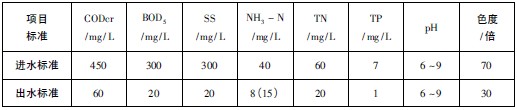 表1 設計水質以及排放標準