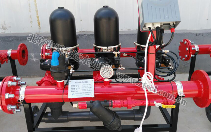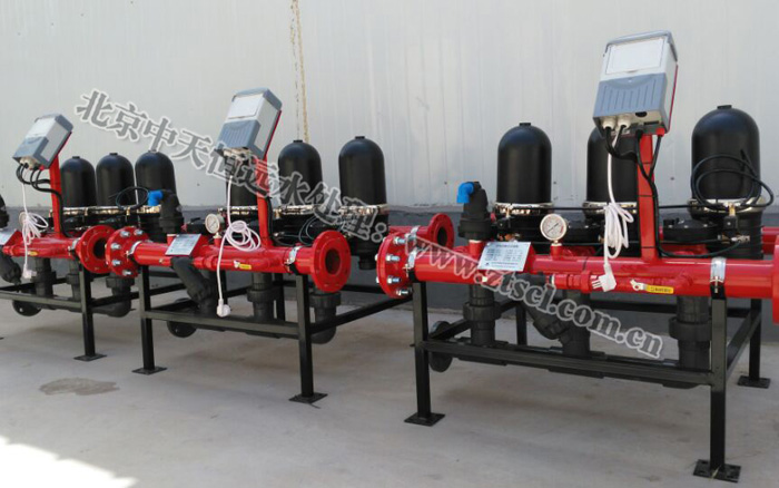 過濾器反洗的啟動采用時間和壓差同時控制,工作時間和反洗時間的設定都可現場調整。當壓差或時間達到設定值時控制器按一定順序逐個啟動反洗,清洗完畢后立即投入使用?刂破髟O有強制反洗功能,并且通過調節電磁閥上的手動控制鈕實現對每個過濾頭的手動控制。